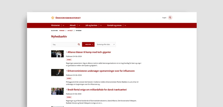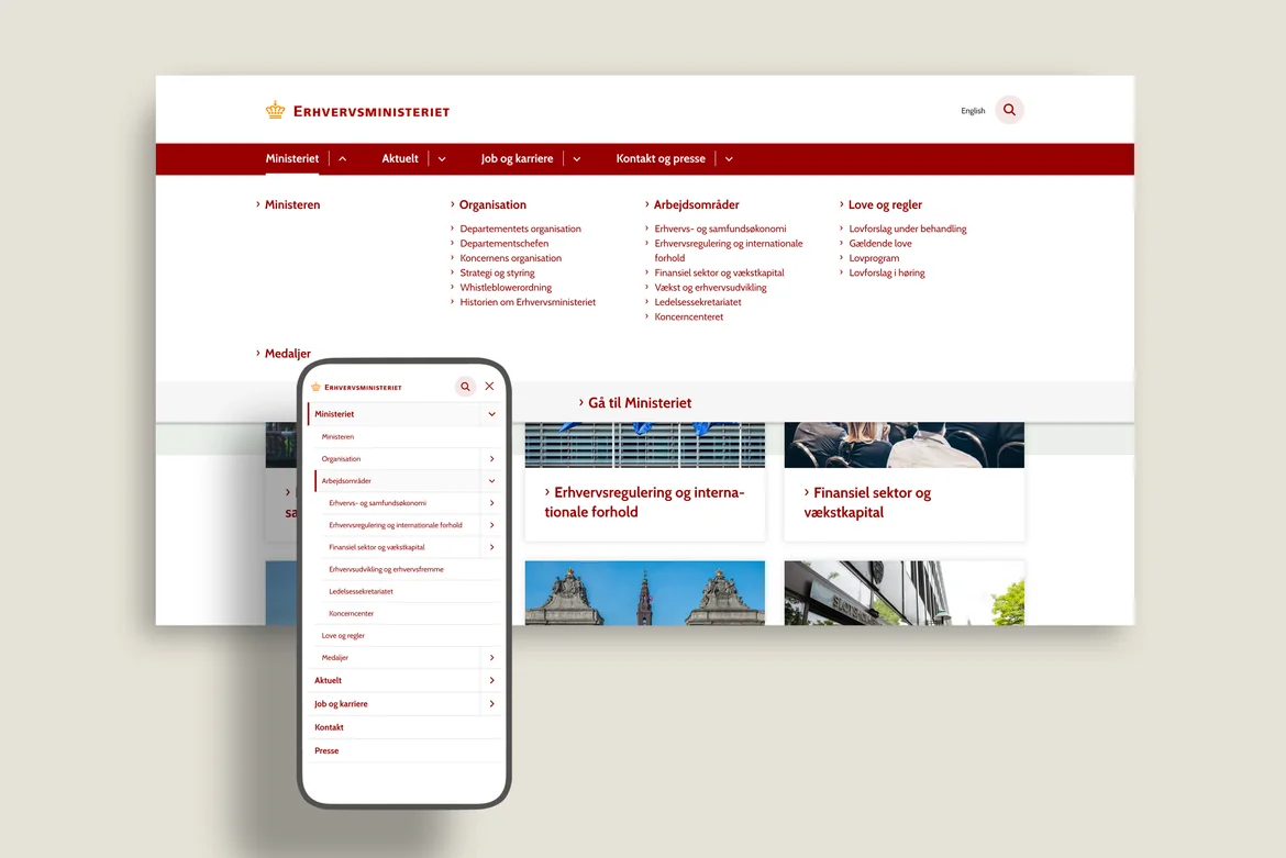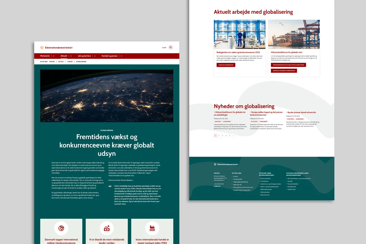 Erhvervsministeriet stod overfor et platformskifte til et mere brugervenligt CMS og ønskede samtidig at genopfriske deres hjemmeside, både med hensyn til design, navigation og indhold. Med GoPublic som ny platform gav vi Erhvervsministeriets online tilstedeværelse nyt liv.