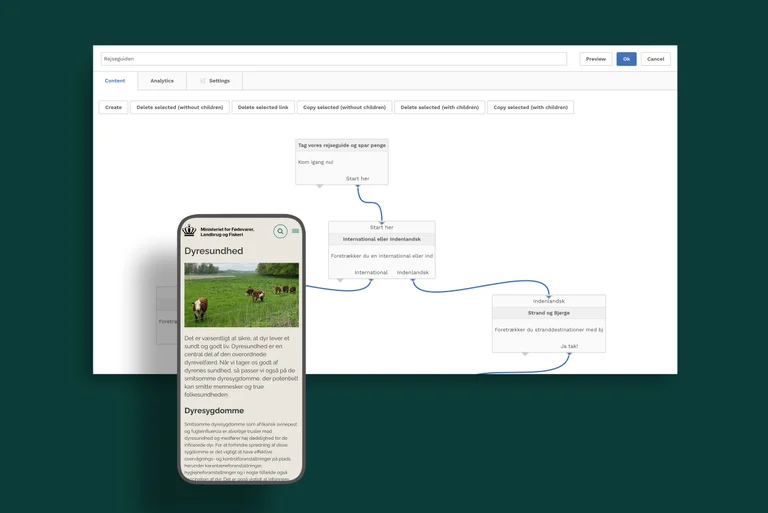 Samarbejdet mellem GoPublic og Ministeriet for Fødevarer, Landbrug har faktisk været to samtidige projekter: Et koncernprojekt omkring det fælles design for hele ministerområdet og et ambitiøst strukturomlægningsprojekt særligt for for Fødevarestyrelsens website. Disse projekter havde til formål at skabe en sammenhængende digital identitet og forbedre brugervenligheden for ministeriets mange forskellige digitale platforme.